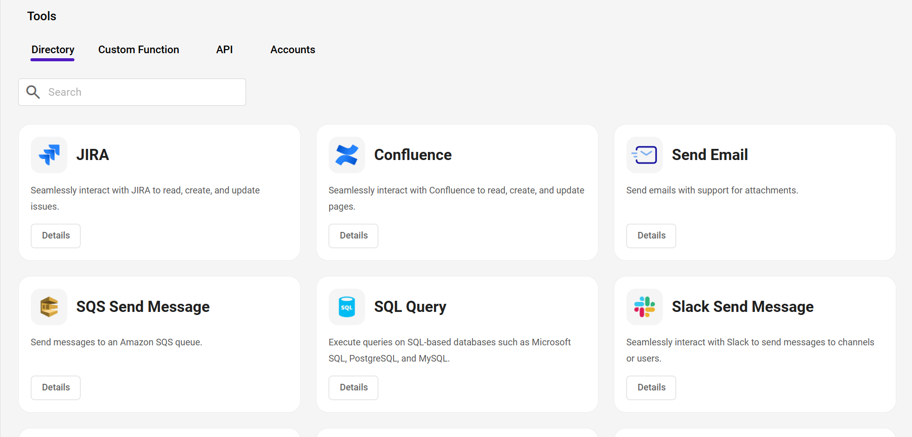 View the complete list of OOTB tools in the Tools Directory