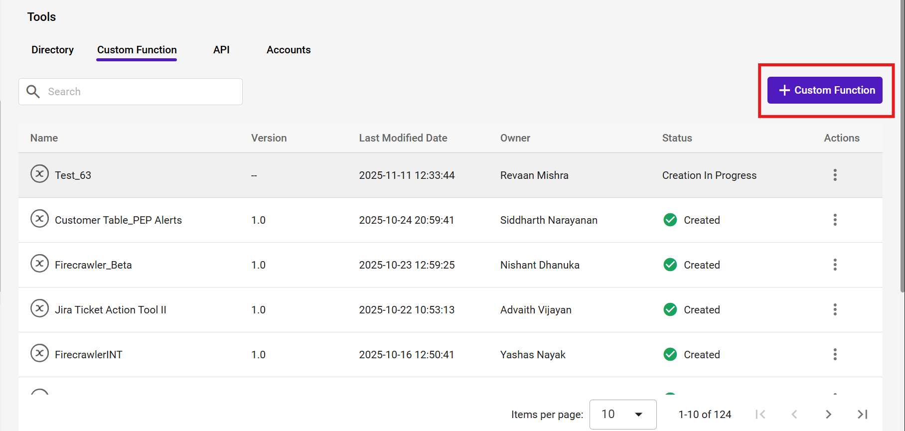 In Custom Functions, please be aware that all previously available tools configured in your Agents will continue to be supported and are available for use alongside any Custom Functions you create.