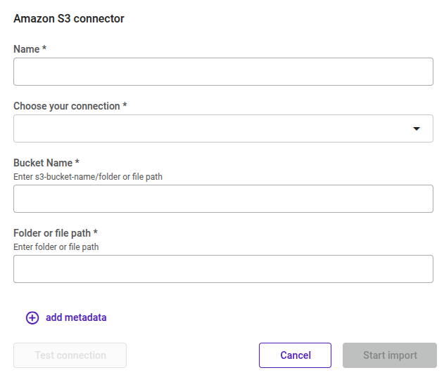 - On the Document Set page, click Import and select the Amazon S3 option