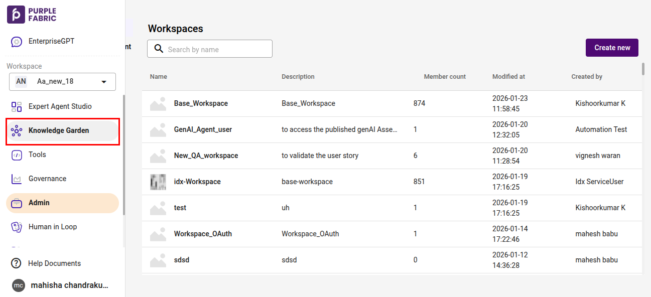 - Navigate to the Knowledge Garden tab located on the left-hand side of the interface