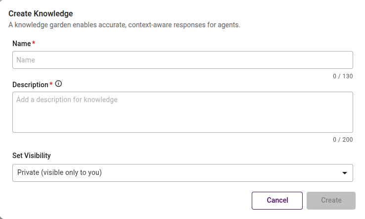 - Click the Create button to finalize the creation of your new Knowledge Garden