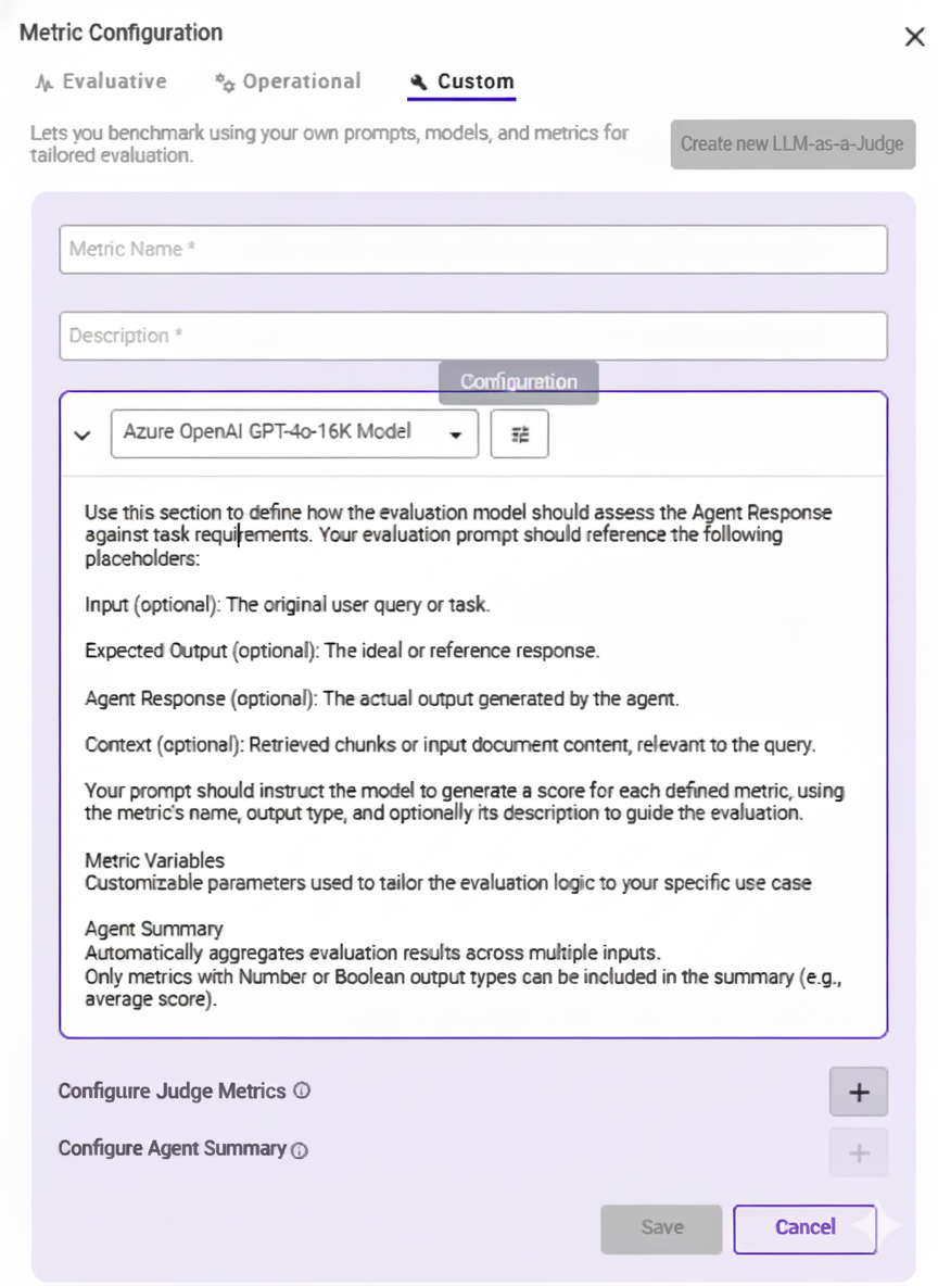 Enter a name for your metric. This should clearly describe what you’re evaluating (e.g., Clarity, Empathy, Policy Compliance)