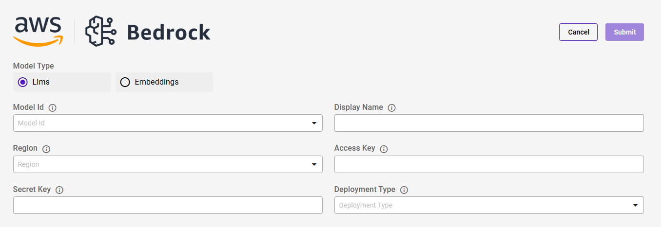 If all prerequisites are met, you can proceed to configure. You need to fill out the following details to add a model by AWS Bedrock